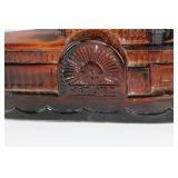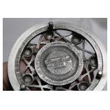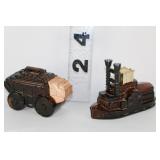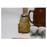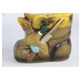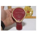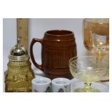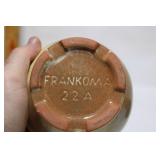 CATALOG TEXT BELOW: 1 - Falstaff Beer Sir John Statue Bar Back Advertising 2 - Old Railroad Lantern 3 - Green Vase 4 - Old Railroad Lantern Light 5 - Vintage Plush Santa Claus They kept the plastic over his face! 6 - Antique Tobacco Jar/Humidor w/ Jeweled Lid 7 - Vintage McKee Ivory Custard Egg Cup 8 - Japanese Shibaten Ice Skater Doll Futaba 9 - Vintage Red Devil Punch Tool 10 - Vintage Grapette Soda Clown Bottle 11 - Phillips 66 Trop-Artic Motor Oil Coin Bank 12 - World War II Glass Military Officer's Candy Dish 13 - Uranium Glass Sherbet Desert Dish 14 - Conoco Super Motor Oil Coin Bank 15 - Black Americana Diaper Dan 1949 16 - Vintage Oil Can 17 - Vtg Advertising Pie Pan & 2 Hand Mixers 18 - Vtg Mickey Mouse Club Metal Lunch Box & Thermos 19 - Vintage Knight Rider Lunch Box & Thermos 20 - Disney Express Train Thermos 21 - 3 Vintage Oil Judge Coffee Cans with Lids 22 - Monarch, Butter-Nut & Griffin's Coffee Cans 23 - Vtg Edwards and Folger's Coffee Tins 24 - 3 Vintage Hills Bros Coffee Cans with Lids 25 - Vintage Mickey Mouse Pluto Thermos 26 - Star Wars The Empire Strikes Back Thermos 27 - Vintage Wyandotte Toy Tin Car Wind Up Toy 603-F 28 - Assorted Knives and Wood Plane 29 - Vintage Santa Cups/Mugs and Sleigh Fitz & Floyd Sleigh 30 - Marx Tin Dick Tracey Police Squad Car No 1 Toy Car 31 - Vintage Nash Automobile Advertising 8 Ball Lighter 32 - Dona Rosa Coyotepec, Oaxaca, Mexican Pottery Dona Rosa Coyotepec, Oaxaca, Mexican Pottery 33 - Vtg Soreno Chip & Dip Aquamarine Bowl 34 - Mid Century Fostoria Moss Green Needlepoint Glass 35 - Louis Comfort Tiffany Candle Holders (4) Louis Comfort Tiffany Candle Holders (4) 36 - California Pottery Bowl 764 37 - LE Smith Moon & Stars Amber Ashtray Mid Century 38 - Salt Glazed Crock 39 - Wall Hanging Insect 40 - Vintage Kitchen Goodies 41 - Vtg Depression Glass Platters & Bowl 42 - 2 Antique Crock Bowls 43 - Vintage Marshall Pottery Crock Signed 44 - Antique Stoneware Crock and Bean Pot 45 - 2 Antique Stoneware Crock Mixing Bowls 46 - 2 Stoneware Jugs 47 - California Pottery 2 Tier Desert Tray in PINK 48 - USA Pottery Covered Casserole Dutch Oven 49 - Dairy Queen Kid's Pick-nick Sign 1994 50 - RARE Stretch Armstrong Toy Box--(No Doll) 51 - 3 Budweiser Beer Mugs Steins 52 - 3 Coors Beer Collectible Mugs Steins 53 - Over 3 Dozen Golf Balls 54 - Wood Carved Angel 20 Inches Tall 55 - Antique Lantern 56 - Coleman Camping Lantern 57 - Vtg Venice Rialto Bridge Lamp 58 - Frankoma Pottery Duck Planter 59 - Two Frankoma Pottery Bowls 60 - 3 Frankoma Pottery Items--Mugs and Creamer 61 - 7 Collectible Frankoma Pottery Plates 62 - Set of 6 German S.C. Eschenfelden Beer Steins Cups 63 - Turquoise Planter 64 - Northwood Blue Opalescent Footed Bowl 65 - Vtg Salt & Pepper Set 66 - Signed Bay Pottery Studio Ribbon Desk Organizer 67 - Orange, Yellow & White Swirl Hobnail Salt/Pepper 68 - Amber WWII Military Officer's Candy Dish WOW 69 - Antique Miniature Oil Lamp 70 - 4 Heinz 57 Ketchup Crock Stoneware Bowls 71 - Metal Elephant 72 - 2 Aqua Blue Bowls 73 - 3 Budweiser Beer Annual Advertising Mugs 74 - Signed Anna Van Briggle Pottery Planter Bowl 75 - Roseville Art Pottery Foxglobe #1150 Candle Holder 76 - Frankoma Shogun Plate & 2 Mugs/Cups 77 - Vintage Bonanza Lot-All for one money honey! 78 - 2 VIntage Scotty Dog Candy Containers 79 - Vtg Van Briggle Pottery Wall Pocket Vase 80 - Van Briggle Pottery Vase Colorado Springs 81 - Carved Wooden Eagle Bean Pot & Another 82 - Turtle Planter and Blue Square 83 - Anna Van Briggle Pottery Black Panther 84 - Box of New and Old Pretties 85 - Little Tykes Dracula Vampire Flashlight Toy 86 - 2 Carvings--1 Wood and 1 Stone 87 - Carved Marble Fish Sculpture 88 - Vintage Tins and Bottles 89 - 7 Frankoma Pottery Collectible Plates 90 - Coca Cola Tip Tray & Serving Tray 91 - Vintage Suitcase 92 - Vintage Camping Stove 93 - New in Box-German White Tailed Deer Cookoo Clock 94 - Coleman Battery Powered Lantern 95 - 2 Avon Beer Steins 96 - Vintage Avon Bottle 97 - Vintage Texaco Outboard Motor Oil Tin Can 98 - Vtg One Gallon Brookins Liquid Dispenser Duroglass 99 - Lot of 6 Early Canning Jars-Economy & 100 - Lot of 6 Canning Fruit Jars--Drey, Mason +++ 101 - 5 Old Ball Fruit Canning Jars and More 102 - Lot of Old Canning Jars-Ball, Kerr and More 103 - Vintage Car Avon Bottles 104 - Assorted Old Avon Bottles-Dogs, Duck, Bear 105 - Lot of AVON Bottles 106 - Avon Bottles -Golf, Tool & More 107 - Avon Bottles-Stagecoach, Lantern, Skull & More 108 - Animal Avon Bottles 109 - Adorable Sleeping Puppy Figurine-Signed 110 - Lot of Toy Cars and Trucks-All for one money! 111 - Lot of Sports Figurines 112 - Maracas and More 113 - Lot of Figurines-All for one money! 114 - Carved Animal Figurines WOW 115 - Uranium Fenton Dugan Double Swan Candy Dish 116 - Pillsbury Dough Boy Toy and Spoon Rest 117 - Lot of Assorted Precious Moments 118 - 10 Silver Dollar City Christian Themed Glasses 119 - Variety Canning Jar Lot-ALL for one money! 120 - Lot of Christmas Santa's and Holiday Chicken 121 - Fostoria Glassware & Blue Bread Baking DISH 122 - Coleman Camping Lantern 123 - Western Falls Galvanized Minnow Bucket 124 - Coleman Camping Lantern 125 - Vtg Glass Pitcher, Vase & Lowenbrau Mug 126 - Vintage Christmas Elf's Elves & More 127 - Cast Iron Schultz Beer & Ale Horse & Wagon 128 - Vintage Ceramic Christmas Tree 129 - Jim Shore Santa Claus "Season Sweets" 130 - Vtg Jabawga Glass Amber Friar Mug 131 - Refrigerator Dish 132 - Dryden Signed American Pottery Vase 133 - Signed Dryden Pottery Vase 134 - Pottery Candle Holder 135 - Vintage Cup with Children Farming 136 - Glass Owl Figurine 137 - Royal Wedding Bell 138 - Mid Century Modern Atomic Starburst Glasses 139 - Anchor Hocking Fairfield Blue Nappy 140 - Pairpoint Cup Plates 141 - Advertising Ashtray-Maxwell House Coffee 142 - Assorted Vintage Glass Serving Items 143 - 1950's Abingdon Pottery Pink Star Planter 144 - Vintage Pretties-All for one money! 145 - Lot of Precious Moments 146 - 3 Lamp Globes with 