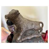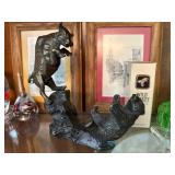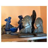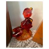- Vintage L.E. Smith Amber Heavy Art Glass Girl w/Geese