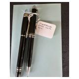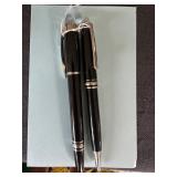 - Vintage 100 Year Montblanc Meisterstuck Black and Chrome Rollerball Set w/Fountain Pen and Leather Sleeve