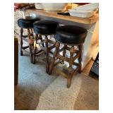 - Three Colonial Revival-Style Oak Leatherette Upholstered Bar Stools,