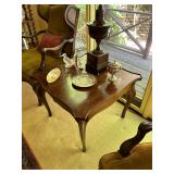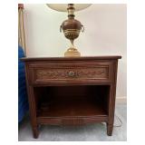 - Karges French Provincial-Style Walnut Tray-Top Side Table, Fitted With A Single Frieze Drawer, Brass Mounts, 20” X 27 1⁄4”