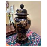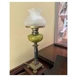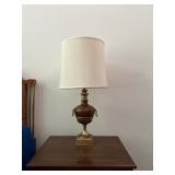 - Traditional-Style Wood And Brass Urn-Form Table Lamp, 19”