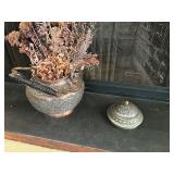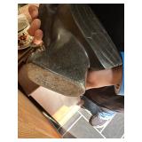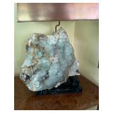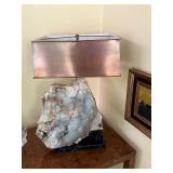 - Large Pyrite Specimen Mounted As Lamp, copper rectangular shade, 17” x 17”