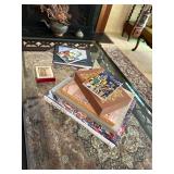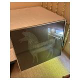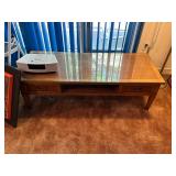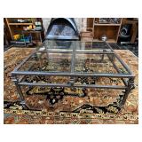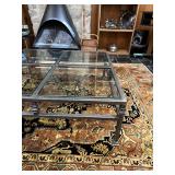 - Modern Wrought Iron-Finish Glass Inset Square Coffee Table, 16” x 42”
