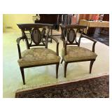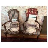 - Pair Of Stained Fruitwood Neopolitan-Style Armchairs, Cut Velvet Upholstered Seats;