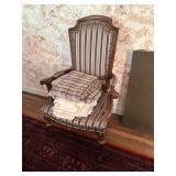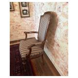 - Set Of Six Louis Xvi-Style Walnut Tall Back Upholstered Dining Chairs, comprising four side chairs and two master armchairs, 42”h,