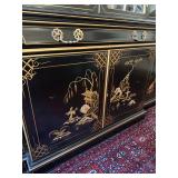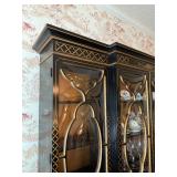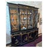- Karges Asian-Style Chinoiserie Black Lacquered and Gilt Decorated Breakfront China Cabinet, 80 1⁄2” X 72” X 15”