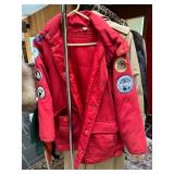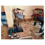 - 2 red vinyl upholstered Captain’s chairs, 29”h