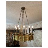 - English Bouilotte Cast Brass Two-Light Lamp With Tole Shade, 16 1⁄2”h