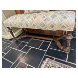 - William And Mary-Style Upholstered Mahogany Bench - 21” X 44” X 14”