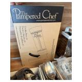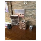 - Shelved Bookcase, Desk Chair And Table Lamp, 18”h