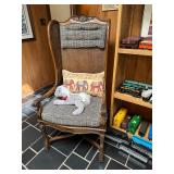 - Pair Of Tall Back Caned Wing Chairs, fitted with upholstered loose cushion seat and backrest, 50”h,