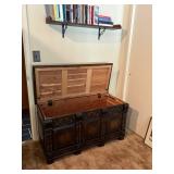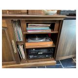 - Modern stained walnut record cabinet.; 33 1⁄2” x 48” x 21”
