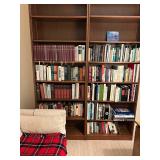 - Two Modern Cane-Inset Chestnut Open Shelved Bookcases, 78” x 30” x 14”
