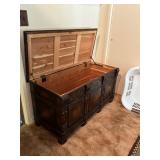 - Jacobean-Style Stained Oak Cedar Lined Blanket Chest, 20” x 45” x 21”