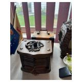 Rare- LANE Cedar Chest Store Display Advertisement with Sliding Base 3 Piece Oak Livingroom Set, 2 Side Tables & Coffee Table Pair of Upholstered Stools with Storage Paisley Sofa with Matching Loveseat Weighted Sterling Candlesticks Brass Lamps Large Selection of Books: Historical Nonfiction & More Collection of Dachshund Collectibles Collection of Clown Collectibles Murano Hand Blown Glass Clown Kenwood Stereo Model KT-30 Kenwood Amp Model KA-50 Optimus Cassette Player SCT-53 Record Albums Hand Painted Wooden Kitchen Stool Sterling & Nobel Wall Clock Cast Iron No 8 Dutch Oven Vintage Frosted Stemware & Drinking Glasses Collection of Norman Rockwell Collector Plates Amber Glass Collections of DVDs, CDs, Cassettes Bookshelves- Various sizes, styles and eras Yashica MG-1 Camera Canon Powershot A1100 Bearcat 220 14 K Gold Armco Service Pins Belt Buckles Vintage Metal Kitchen Cabinets Macrame Plant Hangers Vintage Cookie Cutters, Utensils and other Kitchen Items Solid Wood Table with Bench Seating Czech Art Glass Tango Style Vase Vintage Blow Molds: Candlesticks & Santa Vintage & Graphic T-Shirts & Crewnecks 4 Poster Bed Quilts Art Deco Floor Lamps Mid-Century Bedroom Furniture Kerosene Lanterns Vintage Chrome Standing Towel Rack Mid-Century Side Table Mid-Century Vanity Fenton Green Satin Globe, Table Lamp, Top globe broken Brass Décor Morse Sewing Machine Mid-Century Floor Lamps Radioteletype Mid-Century Wood Desk & Industrial Metal Desk Various Maps Christmas and Other Seasonal Décor Hand Tools Craftsman Push Mower Weights Nishijin Pachinko Machine 3 Stair Lifts Refrigerator Wood Crates Mac Desktop Glass Doorknobs Maytag Washing Machine Maytag Dryer MORE!