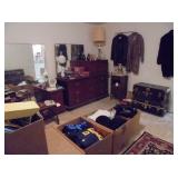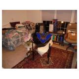 | Round Mahogany Claw Foot Dining Room Table, Antique Mirrored Front Armoire w/Drawer, Victorian Setee, (6) Fancy Back Matching Dining Room Chairs, Antique Mahogany Glass Top Oval Coffee Table, Lighted Curio, (2) Antique China Cupboards (One Curved Top), Buffet, Full Poster Bedroom Set, Mid Century Chest On Chest w/Mirror, Matching Chest & (2) Night Stands & Vanity w/Mirror, Mahogany High Boy w/Queen Anne Legs, Newer Oriental Cabinet, Antique Spindle Leg Two Drawer Chest, Antique Low Chest/Wash Stand w/Hand Painted Flowers, Twin Sleeper Sofa, Wrought Iron Dinette Chairs w/Glass Top Table, Vintage Mahogany Slant Front Bookcase w/Secretary Top, Victorian Fireside Chair, Wing Back Chair, (2) Wood Wall Display Racks For Multi Cup & Saucers, Small Mission Oak Bookshelf, Hand Made Oriental Rug, Tiffany Style Lamp, 30+ Cup & Saucers (Some Antique, English, Russian, Austrian & German), Large Cobalt Blue Venetian Glass Vase, Imperial Carnival Glass Bowl, (2) Sets Vintage Silver Plate Flatware, Gold Plated Flatware, Many Pieces Silver Plate Including Coffee Set, Casseroles, Serving Platters, etc., Kitchen Aid Midnight Blue Mixer, Blue Willow China, Partial Set (Flower Pattern) Limoges Dinnerware w/Many Serving Pieces, Large Vintage Set Platinum Trim Dinnerware, (8) Newer Fiesta Cereal Bowls & Dinner Plates, Vintage Pyrex Mixing Bowls, Stemware Including Some Vintage, Many Hand Painted Plates, Set Twelve Ruby & Crystal Glass Water Goblets, Pair Brass Lanterns, Antique EAPG Oil Lamp, Antique Mission Style Clock w/Keys, Self Regulator Wall Clock w/Key, (2) Lenox Pierced Vases, Tons Miniatures (Small Collectible Glass & China Items), Framed Art (Some Signed), Framed Oriental Gemstone Pictures, Costume Jewelry, Men's Cologne & After Shaves, Men's Orvis & Wool Rich Flannel Shirts, Ladies & Men's Clothing & Accessories Including Men's & Ladies Leather & Suede Coats, Ladies Fur Coats (Some As Is), Men's Vintage JC Penney "Big Mac" Coveralls, Vintage Ladies Cashmere Swing Coat, New Men's Reebok Tennis Shoes In Boxes, Men's LL Bean Fur Lined Duck Boots, Hand Made Afghans, Linens, Boyd's & Other Collectible Bears, Cabinet Sewing Machine & Some Notions, Polaris Telescope, (2) Vintage Pen & Pencils Sets, Hoover Wind Tunnel Vacuum, Full Garage Of Tons & Tons Holiday & Christmas Including Some Vintage (Shiny Brite Bulbs In Boxes), Fancy Newer Figural Bulbs, Very Large Collection Dept. 56 Christmas In The City, (Buildings & Accessories In Original Boxes), Light Strands, Table Decor, Wreaths, Tree (In Box), etc., Newer Snow Blower, Electronics (Three Scanners - 2 In Original Boxes), Upright Freezer |