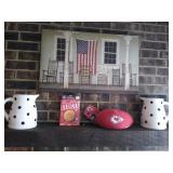 Quality Furniture Pennsylvania House (w/ Hidden Compartments) - King Bed Frame, Pair End Tables, Dresser, Dresser/Chest; Ashley Coffee Table/Lifting Desktop, Ashley Center & End Tables, 2 Brown Leather Power Recliners, vintage Ethan Allen Drop Leaf Corner Table, Vintage & Antique Curio Display Cabinets, Antique Drop Leaf Secretary, Vintage Local Area Church Pew, Blonde Inlay Pattern DR Table (2 Leaves/No Chairs), Antique DR Table (no chairs), 4 Windsor style Chairs, Pressbacks, 2 Electric Fireplaces (corner & straightline with displays), Hekman 3 pc Nesting Tables, Thomasville Buffet Server Holidays & Seasonal Decor Items Galore! If dressing up your home for the holidays is your passion you'll love the Large Selection of Holiday Decor Accents packed in this house! Halloween, Christmas, Easter, Thanksgiving...From Anna Lee to KC Chiefs there's something for everyone! Plus, lots of holiday sundry items and smalls to create your own Wreaths and accent pieces. Bring your shopping bags for this one-tubs and tubs of goodies to dig thru! Not to mention so much outdoor Furniture, Furniture, Planters, and Accents Appliances & Homewares Front Loading Washer & Dryer, Refrigerators, Upright Freezer, Route 66 Decor Items, Mens & Womens Clothing and Accessories, Kitchen Countertop Appliances & Supplies aplenty to host the largest of parties, so much more still being discovered...