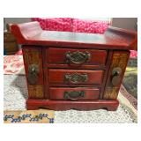 Bedroom #1 including king size bed with canopy top, Chinese alter table c. 1865, chest of drawers, antique nursing rocker, antique wardrobe, small eight-drawer chest