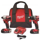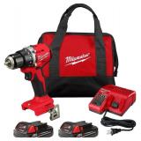 Milwaukee M18 18V Lithium-Ion Brushless Cordless 1/2 in. Compact Drill/Driver Kit with Two 2.0 Ah Batteries, Charger and Case