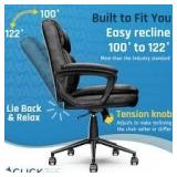 Bring relaxation to your busy workday with the Click365 Transform 2.0 extra-comfortable ergonomic desk chair. The Click365 chair delivers American comfort, with extra-soft padding in headrests, backrests, and seat cushions. This chair has a contoured 5" thick seat cushion and reliable ergonomic support, providing long-lasting comfort and making it perfect for everyday use at home and in the office. Pneumatic adjustable height, a swivel base design, and top-grade smooth-rolling casters ensure the office chair is easy to move and position. This desk chair is upholstered in premium durable bonded leather and comes with high-density foam, a heavy-duty metal base, and sophisticated stitching. You can purchase this chair with confidence.