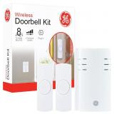 GE Wireless Doorbell Kit, Plug-In Receiver, 2 Push Buttons Door Bell, 8 Melodies Doorbell Chime, 4 Volume Levels, Classroom Doorbell, 150 Ft Range, White, 19300