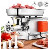 - STAINLESS STEEL&HEAVY DUTY---The electric meat mincer is crafted from high-quality stainless steel, delivering unbeatable durability and long-lasting performance. Its sturdy construction makes it ideal for heavy-duty use in commercial kitchens, while its compact design ensures it can easily fit into any size workspace. Weighing in at around 50lbs, this machine is designed to handle large amounts of meat with ease, making it the perfect tool for high-volume food processing operations.