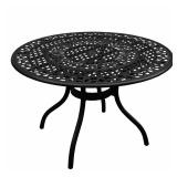 - Ornate Outdoor Mesh Aluminum 48-in Black Round Patio Dining Table dimensions are: 48" L x 48" W x 30" H, 48lbs