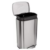 Amazon Basics Smudge Resistant Rectangular Trash Can With Soft-Close Foot Pedal, Brushed Stainless Steel, 50 Liter/13.2 Gallon, Satin Nickel Finish, 16.7"L x 14.7"W x 25.9"H