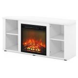 Furinno Jensen Entertainment Center Stand with Fireplace for TV up to 55 inches, White