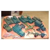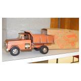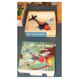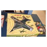 TOYS: 1961 TONKA PRESSED STEEL HYDRAULIC DUMP TRUCK WITH BOX, HUBLEY METAL TOY COPTER WITH BOX, HUBLEY KIDDIE TOY DIE CAST P-38 FIGHTER PLANE AND #495 NAVY FIGHTER BOMBER WITH ORIGINAL BOXES, COX "THIMBLE-DROME" STUKA #6400 AIRPLANE WITH ORIGINAL BOX, HUBLEY #433 PIPER CUB DIE CAST AIRPLANE, VINTAGE G.I. JOE DOLL WITH ACCESS., CAST IRON "KYSER & REX" BARREL DIME REGISTER BANK...