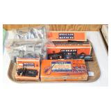 TRAINS: LIONEL O-GAUGE: POSTWAR LOCOMOTIVES WITH BOXES TO INCLUDE #2321 LACKAWANNA, #2359 BOSTON & MAINE, #773 HUDSON WITH #2426W TENDER, #1666 w/2689W TENDER, N.Y. CENTRAL #2344P & #2344T DUMMY, #2344C N.Y. CENTRAL B-UNIT, #626 B&O SWITCHER, #6424-110 AUTO FLAT CAR COMPLETE WITH BOX, #6801 FLAT CAR w/BOAT & BOX, #6828 HARNISCHFEGER TRUCK CRANE CAR & #6827 POWER SHOVEL CAR WITH BOXES, 3pc. #2625-2627-2628 PASSENGER CARS WITH BOXES, ZW AND LW TRANSFORMERS WITH BOXES, ASSORTMENT OF ROLLING STOCK. ATLAS #6103 LOCOMOTIVE AND CARS IN BOXES, AHM CASEY JONES & INDIANA HARBOR BELT MOTORIZING KITS, RIVAROSSI CASEY JONES & INDIANA HARBOR BELT MODEL TRAIN KITS NEW IN BOXES, ASSORTMENT OF MODEL KITS BY WALTHER, KASINER, ETC.. (9) VINTAGE "SKYLINE" MODEL BUILDING KITS NEW IN BOXES.