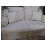 | To highlight a few items: Off-white upholstered, pillow-topped couch and matching love seat; rectangle wood/glass coffee table with matching end table; straight-line wooden dinette table with two large leaves and six partially upholstered chairs; two swivel, tall stools with southwestern upholstered seats; medium desk; queen mattress set (very nice), glass sofa table; two recliners; very nice men (XL) and women (M) clothing; two twin mattress sets with frames; BBQ grill; casual patio set; dressers with night chests; washer and dryer; freezer chest (like new); flat screen television; bicycle; much HH (Household) items. |