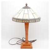 Tiffany-Style Stained Glass Table Lamp w/Wood Base