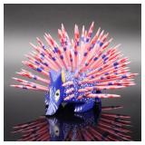 Hand Painted Wooden Blue Alebrije Porcupine Figurine