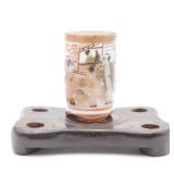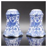 Pair Of Vintage Ceramic Japanese Scalloped Style Phoenix Pattern Shakers