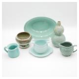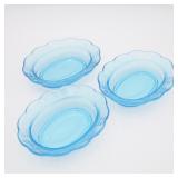 Vintage Aqua Blue Glass Oval Dishes (Set of 3)