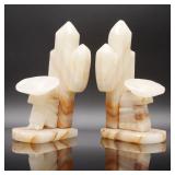 Pair Of Vintage Carved Onyx Mexican Man And Cactus Bookends