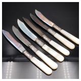 Set of 6 Antique Jennings Bros. Butter Knives with Abalone Handles