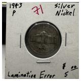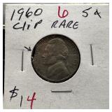 1960 CLIPPED PLANCHET JEFFERSON NICKEL |