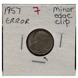 1957 ROOSEVELT ERROR DIME SILVER CLIP |