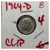 1964-D ROOSEVELT SILVER DIME CLIPPED PLANCHET |