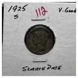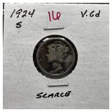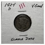 1924-S MERCURY SILVER DIME HARDER DATE |