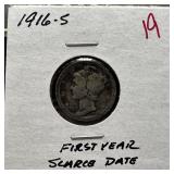 1916-S MERCURY SILVER DIME 1ST YEAR |