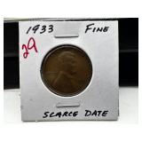 1933 WHEAT PENNY CENT SCARCE DATE |