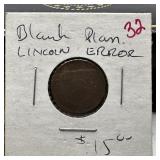 BLANK PENNY / CENT PLANCHET ERROR |