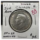 1942 CANADA SILVER HALF DOLLAR HIGH GRADE |