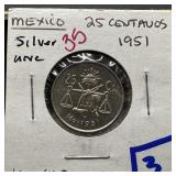 1951 25 CENTAVOS MEXICO / SILVER |