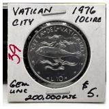 1976 VATICAN CITY 10 LIRE BETTER DATE HIGH GRADE |