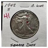 1942-D WALKING LIBERTY SILVER HALF DOLLAR |